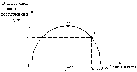 Суть «эффекта Лаффера» в следующем: если экономика находится справа от точки А, то уменьшение уровня налогообложения до оптимального (ra) в краткосрочном периоде приведет к временному сокращению налоговых поступлений в бюджет, а в долгосрочном – к их увеличению, так как возрастут стимулы к трудовой и предпринимательской деятельности (выход из «теневой экономики»).