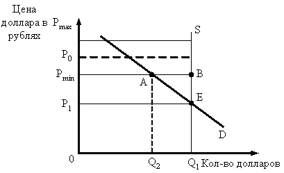 3. Плавающий курс. Обменный курс устанавливается в результате свободных колебаний спроса и предложения как равновесная цена валюты на валютном рынке. При системе абсолютно гибких валютных курсов колебания обменного курса ничем не ограничены, поэтому колебания объемов экспорта и импорта, а следовательно, и состояния торгового баланса, текущего счета и платежного баланса в целом могут оказаться труднопрогнозируемыми, что может оказать дестабилизирующее воздействие на экономику.