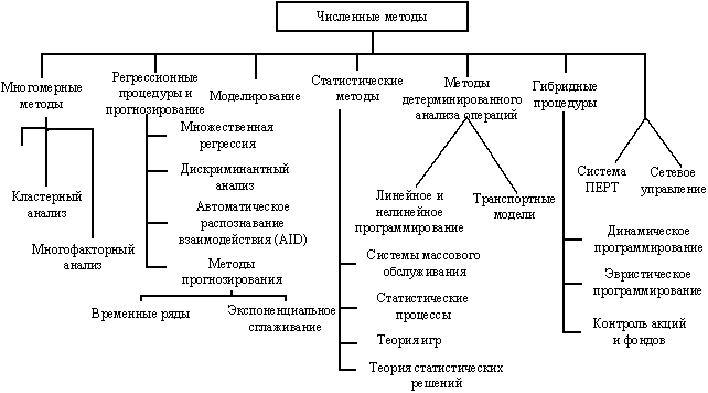 В МИС также входит подсистема обеспечения маркетинговых решений, которая представляет собой взаимосвязанный набор систем данных, инструментов и методик, с помощью которого предприятие анализирует и интерпретирует внутреннюю и внешнюю информацию. На рис. 3.2 приведены математические методы обработки и анализа маркетинговой информации.