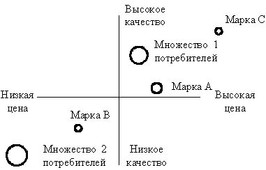 Позиционирование – это установление того, чем товары отличаются от аналогичных товаров конкурентов. Разница определяется по «карте» конкурентной позиции в координатах признаков, важных потребителю.
