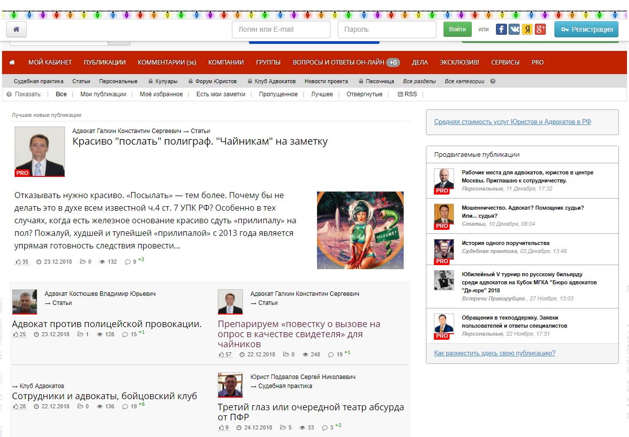 Праворуб несёт пользу и для юристов: как профессиональных, так и начинающих. PRO-аккаунт на портале – достойная альтернатива собственному сайту. Причин на то несколько. Расширенный аккаунт стоит 450 рублей в месяц, что дешевле, чем оплата за интернет или мобильную связь. К тому же свой сайт необходимо долго и упорно продвигать. Иначе его просто не заметят, а Праворуб – популярный портал, который хорошо индексируется поисковиками Google и Яндекс. Другие новости в рубрике: |